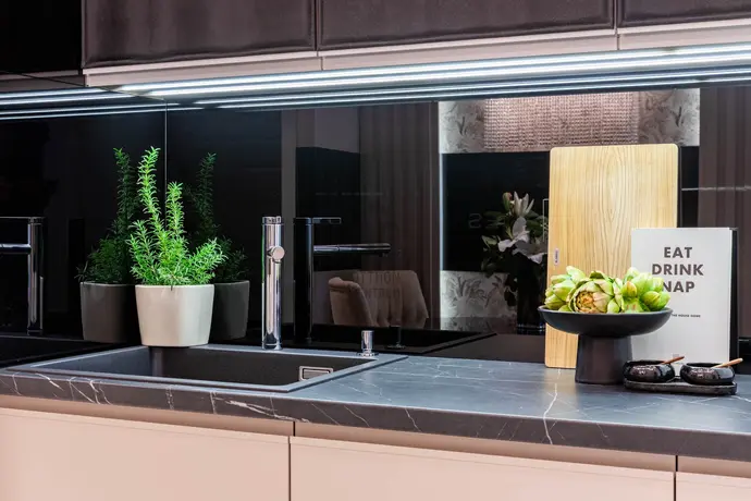 The programmable lighting, including hidden LEDs and statement chandeliers, allows you to set the mood at the push of a button.